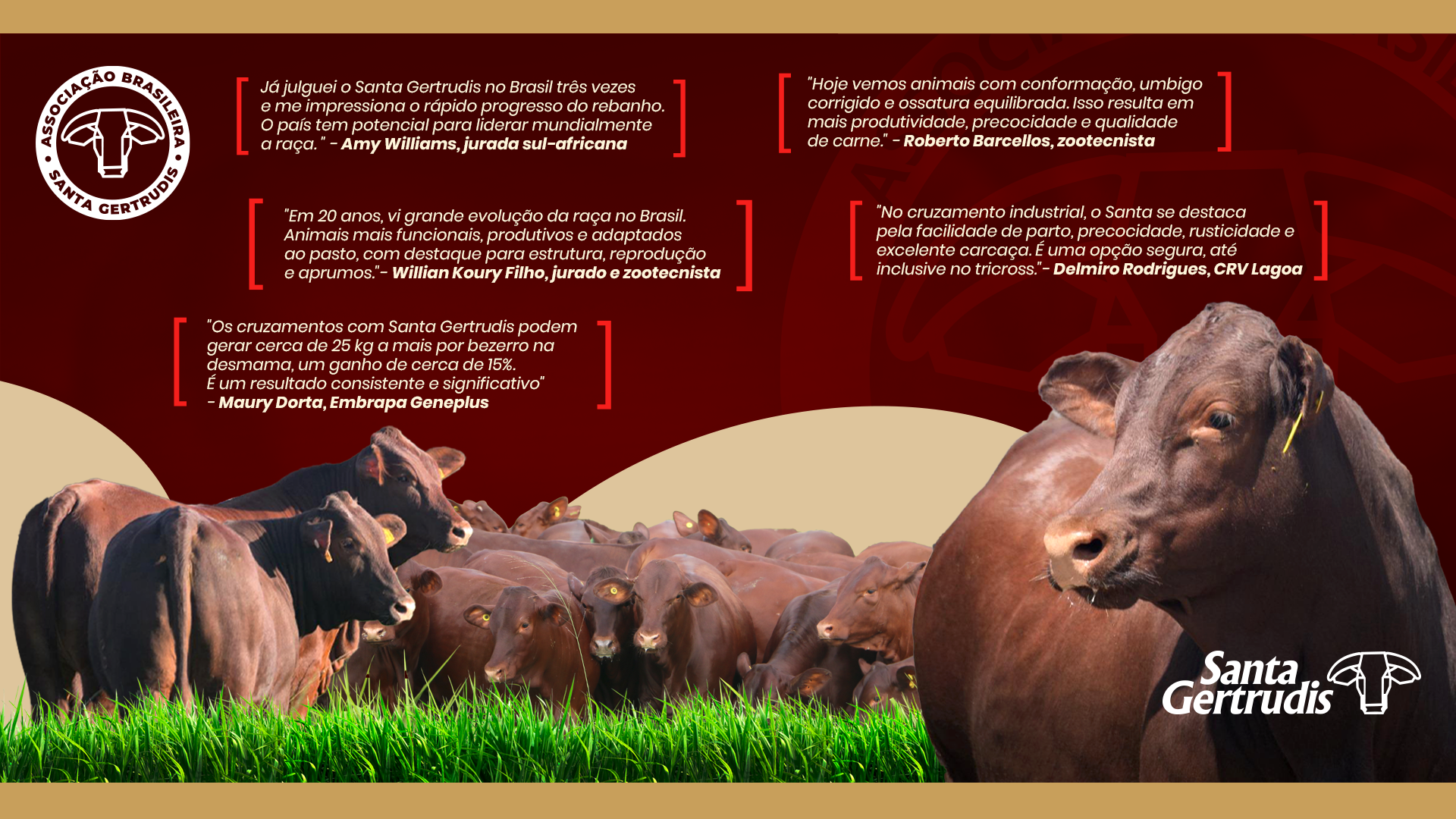 Com sua resistência, excelente ganho de peso e habilidade materna, o Santa Gertrudis se espalhou pelo Brasil e pelo mundo.